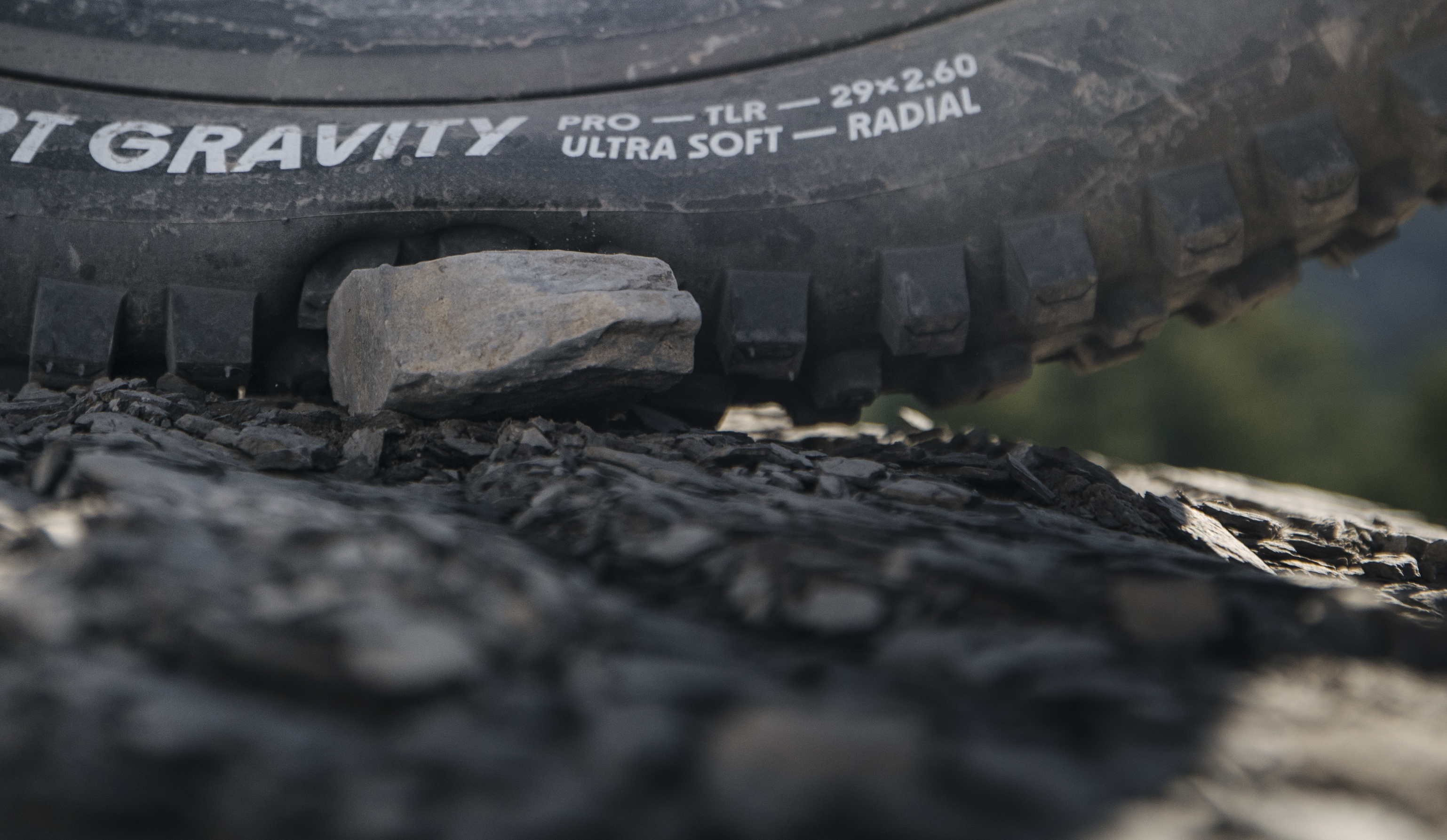 The increased contact area and more flexible response provide significantly more grip, more damping, more safety and more comfort. The tire absorbs impacts better and uses the suspension travel more effectively - it literally sucks itself into the ground. This applies to both mountain bikes and eMTBs, which have significantly more traction on the ground with the two tires.