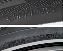 Sur les flancs de la plupart des pneus Schwalbe, tu trouveras une flèche "ROTATION" qui indique le sens de rotation recommandé. Lorsque tu roules, la roue doit tourner dans le sens de la flèche. Sur certains pneus de VTT, tu trouveras par contre une flèche "FRONT" et une flèche "REAR". La flèche "FRONT" indique le sens de rotation recommandé pour la roue avant et la flèche "REAR" indique le sens de rotation recommandé pour la roue arrière.