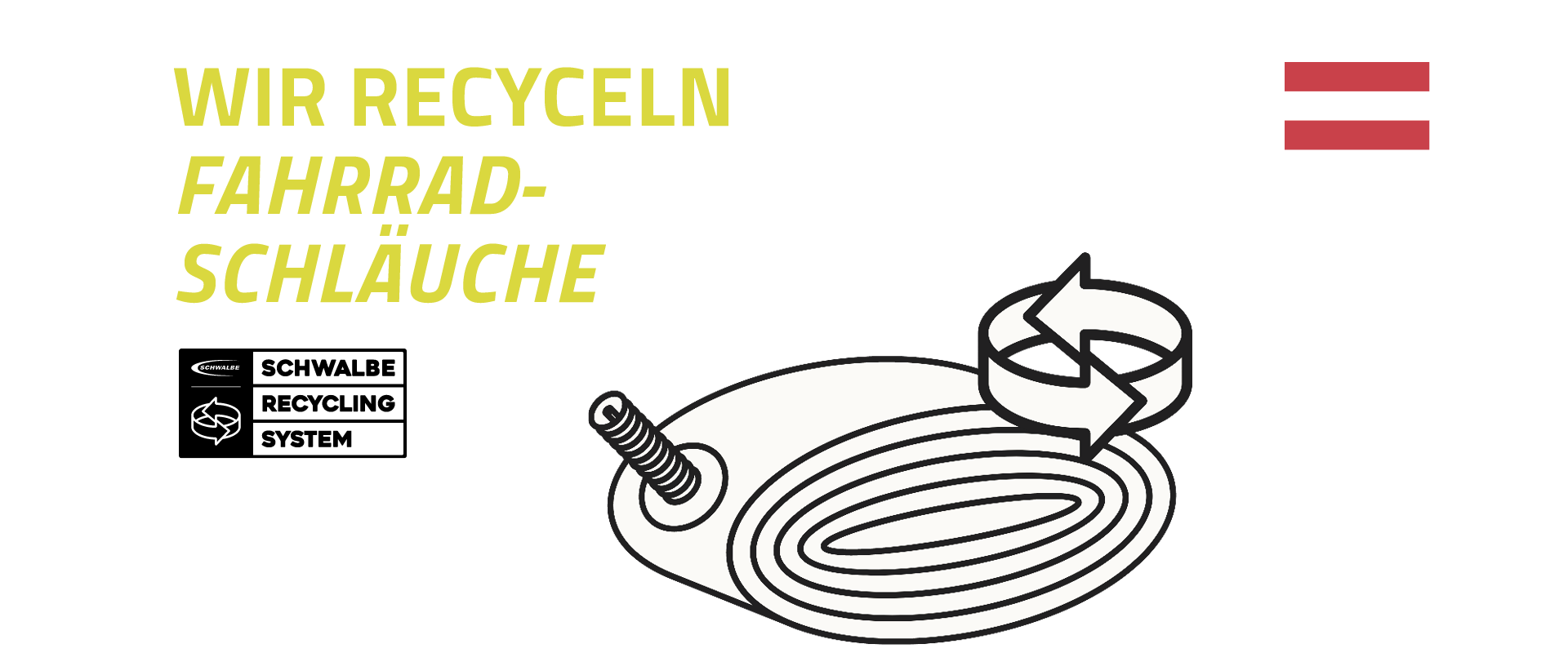 Ein Schwalbe-Schlauch ist zu 100 % recycelbar. Wir können das recycelte Material bei der Produktion neuer Schläuche ohne Qualitätsverlust einsetzen. Dazu haben wir ein spezielles Devulkanisationsverfahren entwickelt. Technisch wird der Recycling-Prozess direkt am Ort der Wiederverwertung realisiert, in unserem Werk in Indonesien. Die Energie-Bilanz ist unter Einbeziehung aller Transportwege positiv (PDF – mehr Informationen). Es wird nur ein Fünftel der Energie im Vergleich zur Herstellung der gleichen Menge von neuem Butyl verbraucht.